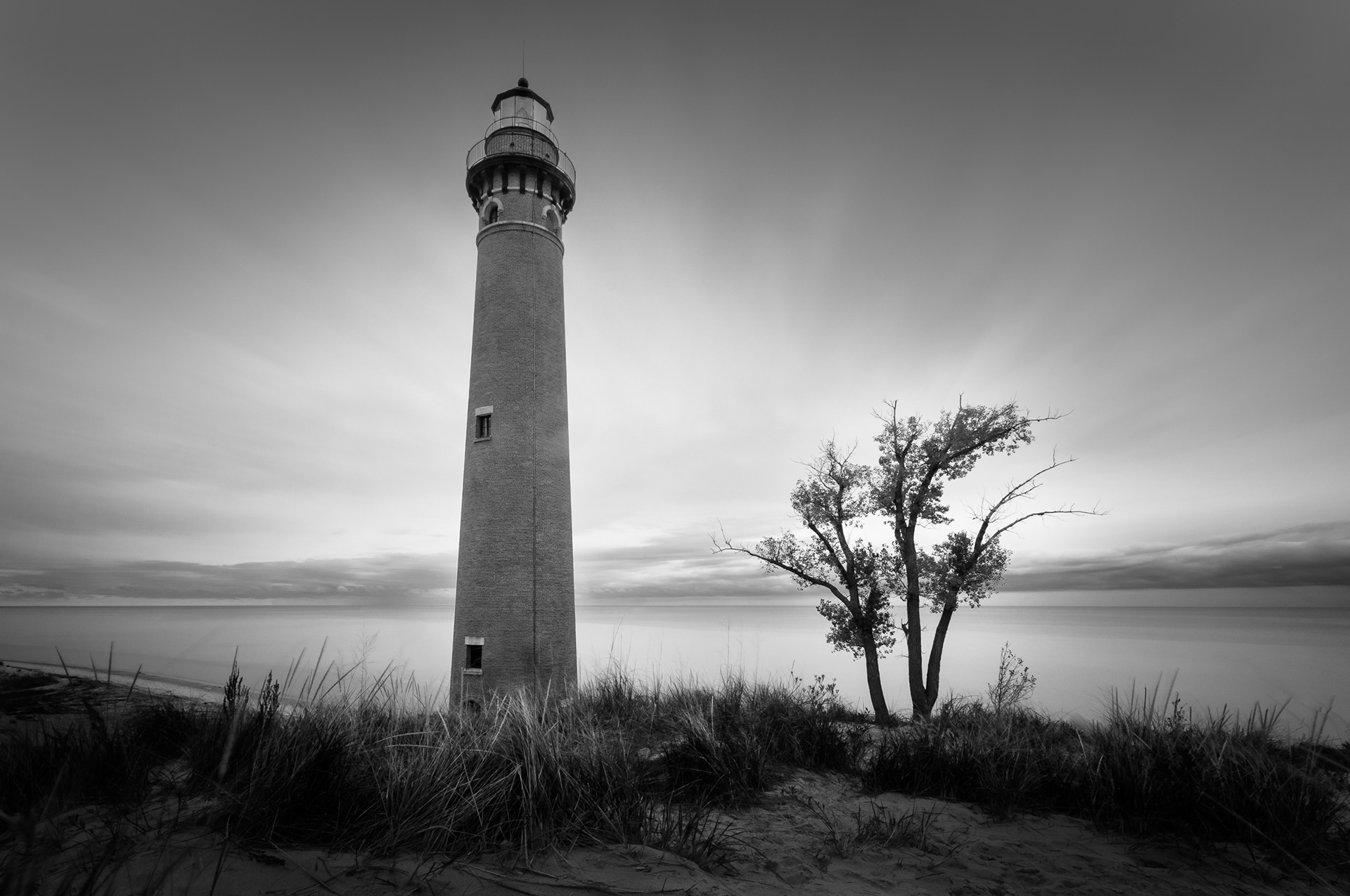 Little Sable Lighthouse, October, 2020. This red-brick lighthouse stands 107 feet tall in Oceana County. It's a little off the beaten path. Exposure time: 60 seconds.