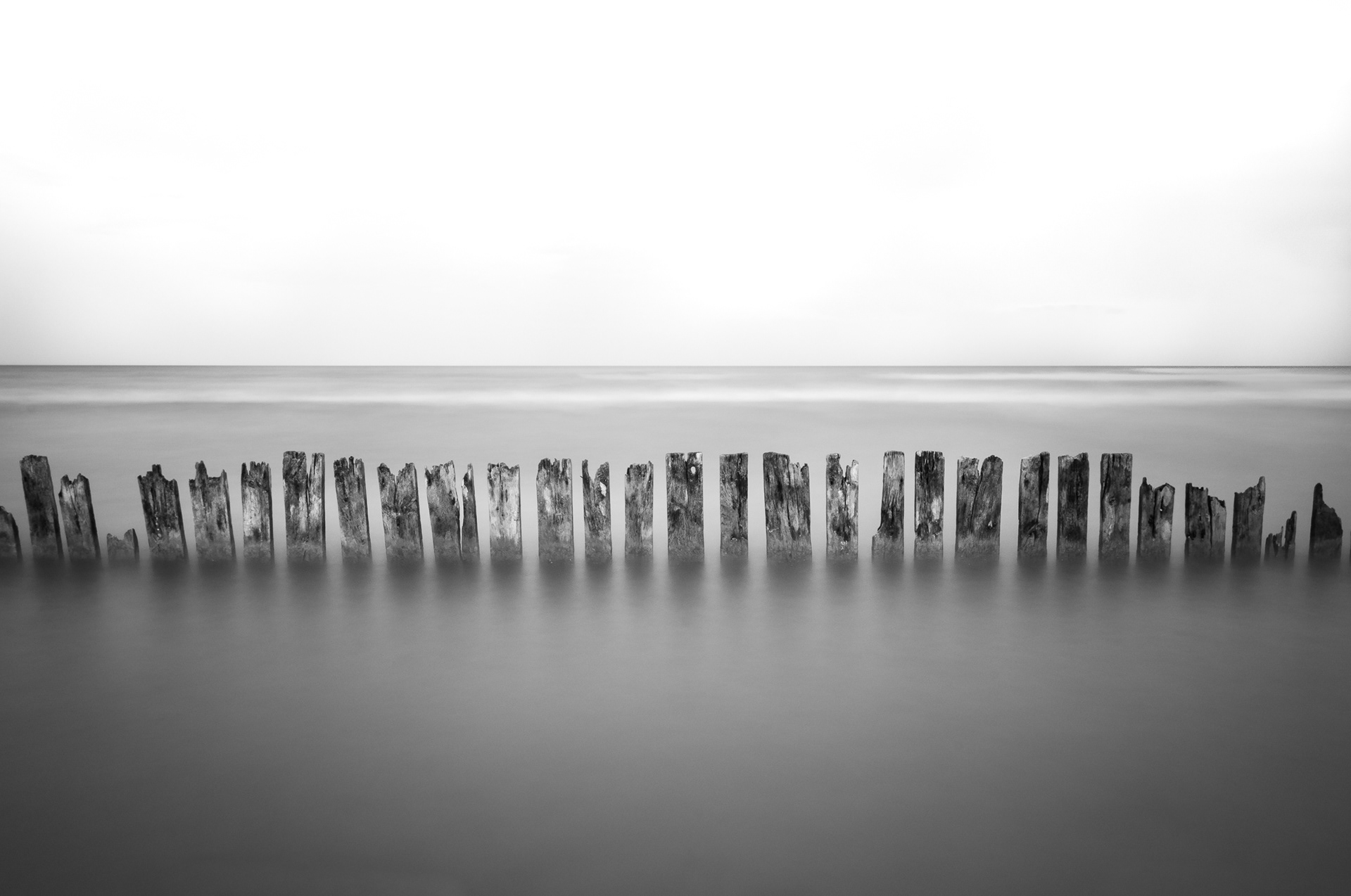 Oceana County, May 2021. Normally, things like these boards are positioned in the water much more haphazardly. These were in a straight line. They are a little north of the Little Sable Lighthouse. Exposure time: 30 seconds.