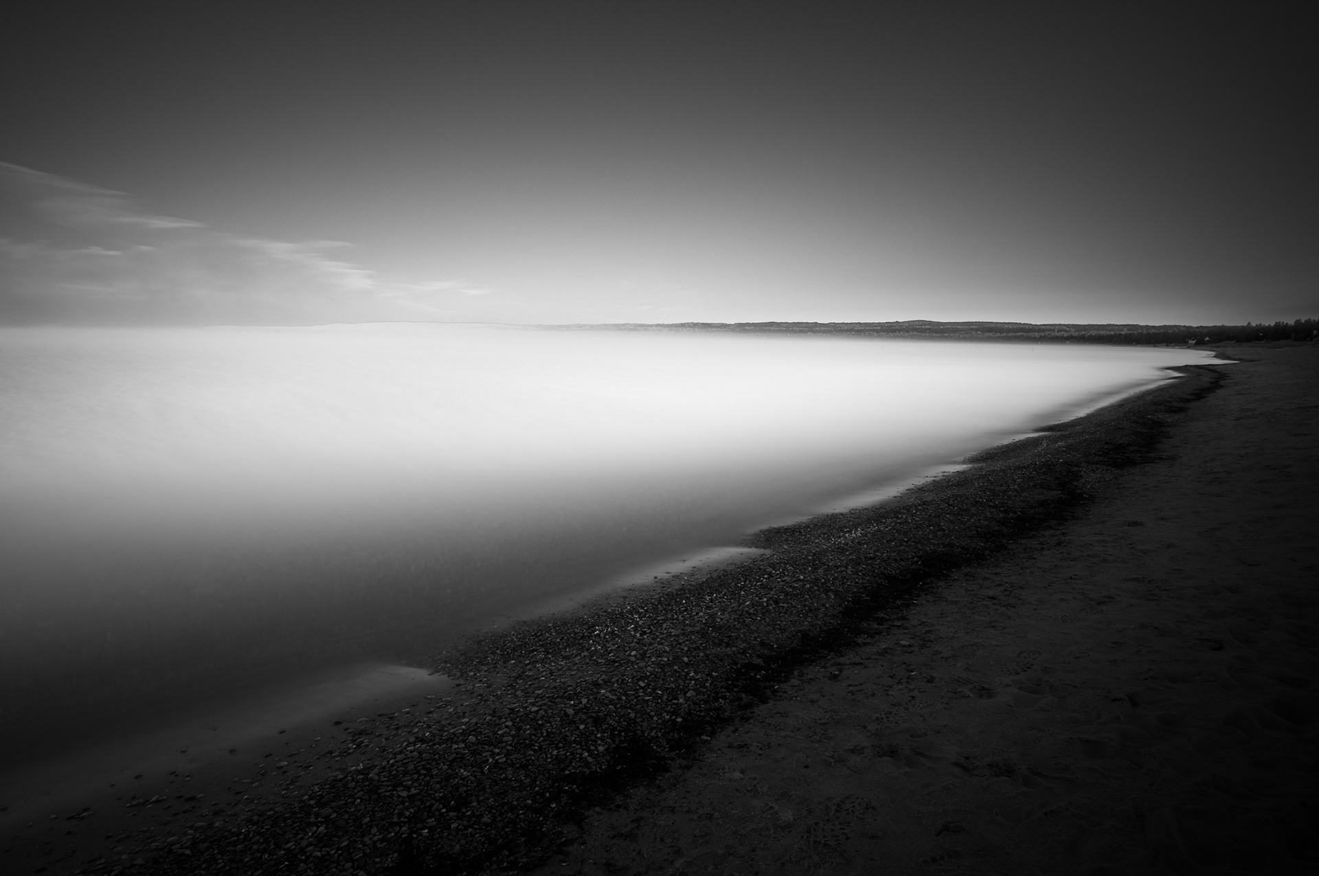 Ludington State Park, October 2022. Taken very early in the morning before any beach crowds arrived. The overnight waves had erased much of the previous day's footprints. It was very calm so there were almost no waves. Due to the absence of daylight, no filter was necessary. Exposure time: 1 second.